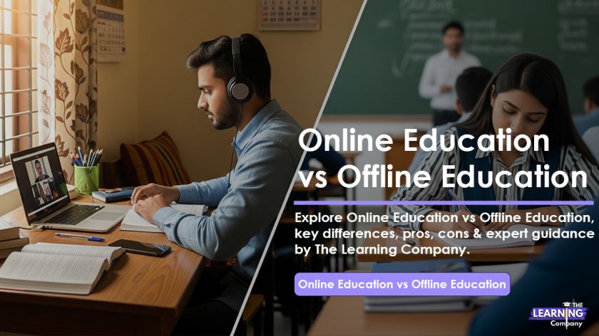 Learning has always been the key to personal and professional growth. Whether we talk about building a career, improving skills, or gaining knowledge, learning plays a central role in shaping our lives. But in the last decade, the way we learn has changed completely. The debate of online education vs offline education is stronger than ever. While traditional classrooms have their own importance, online education has brought new possibilities that were once unimaginable. The question is — which one is better for you? In this blog, we will explore every angle of online and offline education: definitions, differences, pros and cons, real-life examples, and future trends. By the end, you’ll have a clear idea of which mode of learning fits your personal or professional goals. What is Online Education? Online education means studying through digital platforms like Zoom, Google Meet, or university portals. You don’t need to travel to a campus; instead, you can join from your home using a laptop or even a mobile phone. Examples include: A student from Delhi taking an MBA from Amity Online. A working professional from Bangalore learning data science from an international platform. A homemaker in Jaipur attending English communication classes online. The best part? Online education makes world-class universities and courses available to everyone, no matter where they live. What is Offline Education? Offline education is the traditional form of learning where teachers and students interact face-to-face in classrooms. This system has existed for centuries and is still considered the foundation of formal education. Examples include: School and college programs with daily classes. University lectures with labs, libraries, and physical exams. Training centers that require in-person attendance. Offline education is valued for its discipline, social environment, and practical exposure through labs, group projects, and extracurricular activities. Online Education vs Offline Education: Key Differences When we compare online education vs offline education, the differences go beyond just location. Here’s a detailed comparison: Flexibility and Time Management Online: Classes can be live or recorded. Students decide when and where to study. Perfect for professionals and remote learners. Offline: Timetable is fixed. Students must follow the schedule and attend classes in person. Cost and Affordability Online: No travel, hostel, or canteen expenses. Course fees are often lower. Offline: Additional expenses for accommodation, transport, and facilities. Learning Environment Online: Quiet, personal space. But requires self-discipline and focus. Offline: Structured classroom with teacher supervision, which builds routine. Social Interaction Online: Limited peer-to-peer engagement, often through chats or forums. Offline: Face-to-face discussions, group projects, and networking. Accessibility Online: Global access. A student in India can study from a US or UK university. Offline: Restricted to physical presence; not always possible for distant learners. Advantages of Online Education Flexibility: Study anytime, anywhere. Variety: Choose from global courses across fields. Cost-effective: Save money on travel, hostel, and food. Best for working professionals: Continue your job while upgrading your skills. Access to recordings: Rewatch lectures anytime. Advantages of Offline Education Face-to-face interaction: Directly clear doubts with teachers. Structured learning: Routine builds discipline and focus. Better networking: Meet peers, professors, and alumni. Campus experience: Sports, labs, cultural events, and group studies. Hands-on learning: Best for courses like medicine, engineering, and sciences. Challenges of Online Education Requires high self-discipline. Internet issues can disturb classes. Less personal bonding with teachers. Screen fatigue due to long hours online. Challenges of Offline Education Higher expenses for transport, food, and housing. Fixed schedules can be stressful. Limited access for students living far away. Less exposure to global experts compared to online learning. Online Education vs Offline Education: Which is Better for Students? For school and college students, offline education provides personality development, teamwork, and discipline. But online education helps in extra learning. For example, a student preparing for competitive exams can use online platforms for coaching while continuing school offline. The best approach is to combine both: attend school for structured learning and use online platforms for additional skills. Online Education vs Offline Education: Which is Better for Working Professionals? For professionals, flexibility is key. Online education gives them the chance to upskill without leaving their jobs. For example: A software engineer can learn cloud computing online. A marketing professional can do an online MBA. A teacher can learn advanced teaching techniques digitally. Here, The Learning Company plays a huge role by helping professionals compare different online programs from top universities. They also provide free career counselling for working professionals, which removes confusion and saves time. Hybrid Learning: The Best of Both Worlds It’s not always a fight of online education vs offline education. Many institutions are offering hybrid models — where students attend some classes online and some offline. Example: MBA programs where lectures are online but exams and workshops are offline. This model combines flexibility with personal interaction, making it a strong option for the future. Expert Advice: How to Decide Between Online and Offline Check your career goals — Do you want a degree, or just skill development? Consider your lifestyle — Do you have time for daily classes? Check your budget — Online is usually more affordable. Learning style — Do you study better alone or with a group? Course type — Practical fields (like medicine) ne